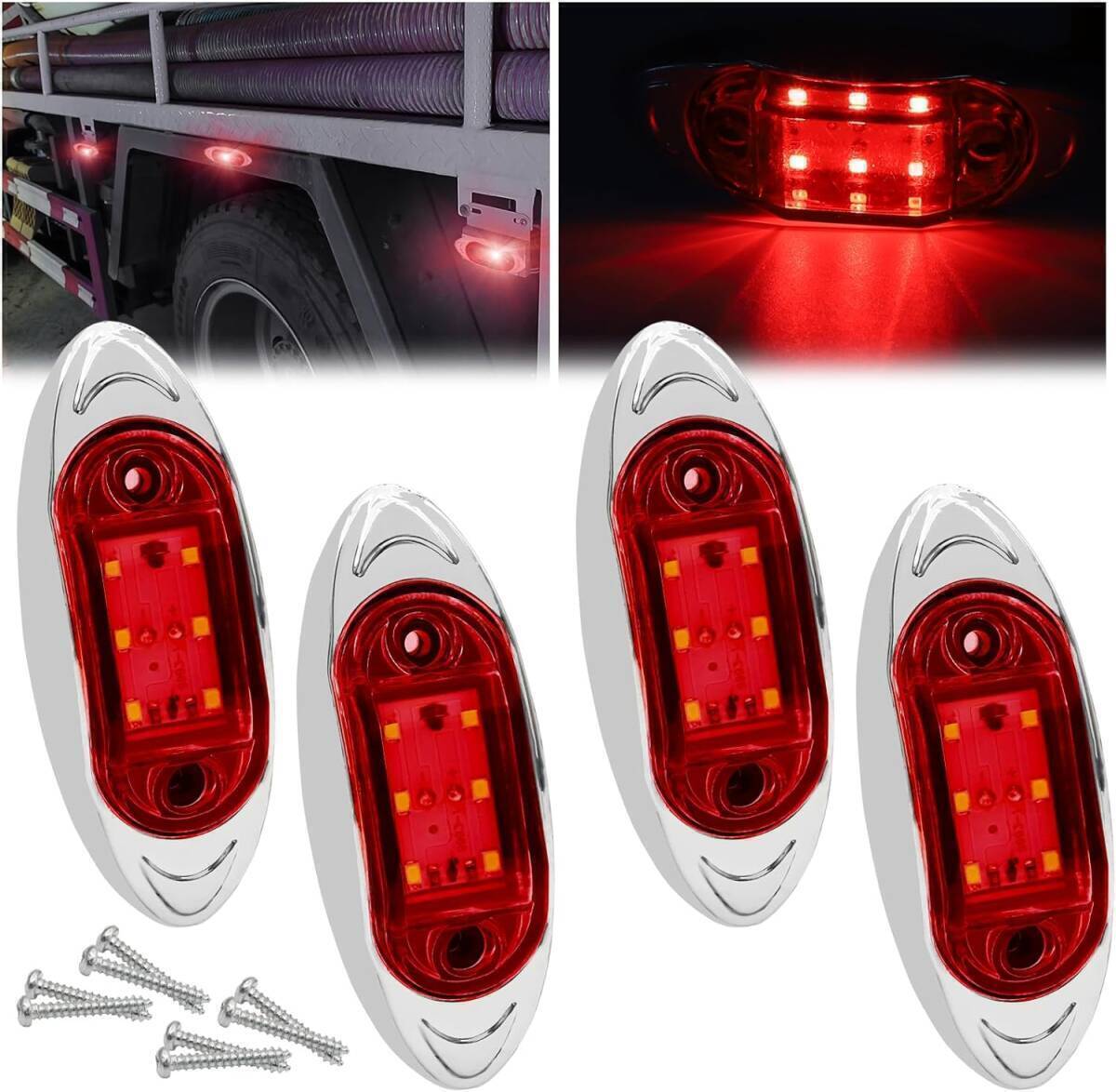 - 送料無料 サイドマーカーランプ 6LED 自動車 トラック 車幅灯 側方灯 路肩灯 サイドマーカー レッド 4個セット 赤 新品 未使用