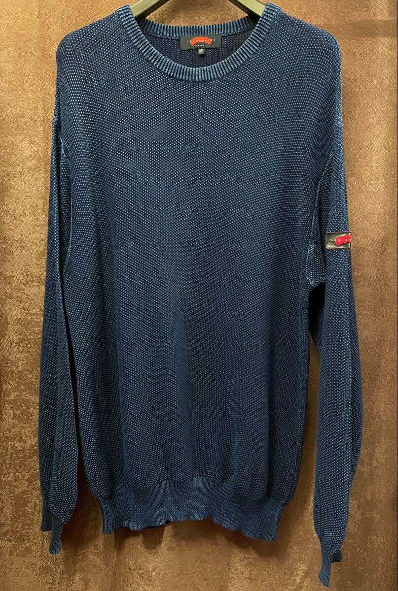 > MADE IN ITALY製 LES COPAINS SPORT クルーネックコットンニットセーター ネイビー 48サイズ レコパン イタリア製 セーター 紺