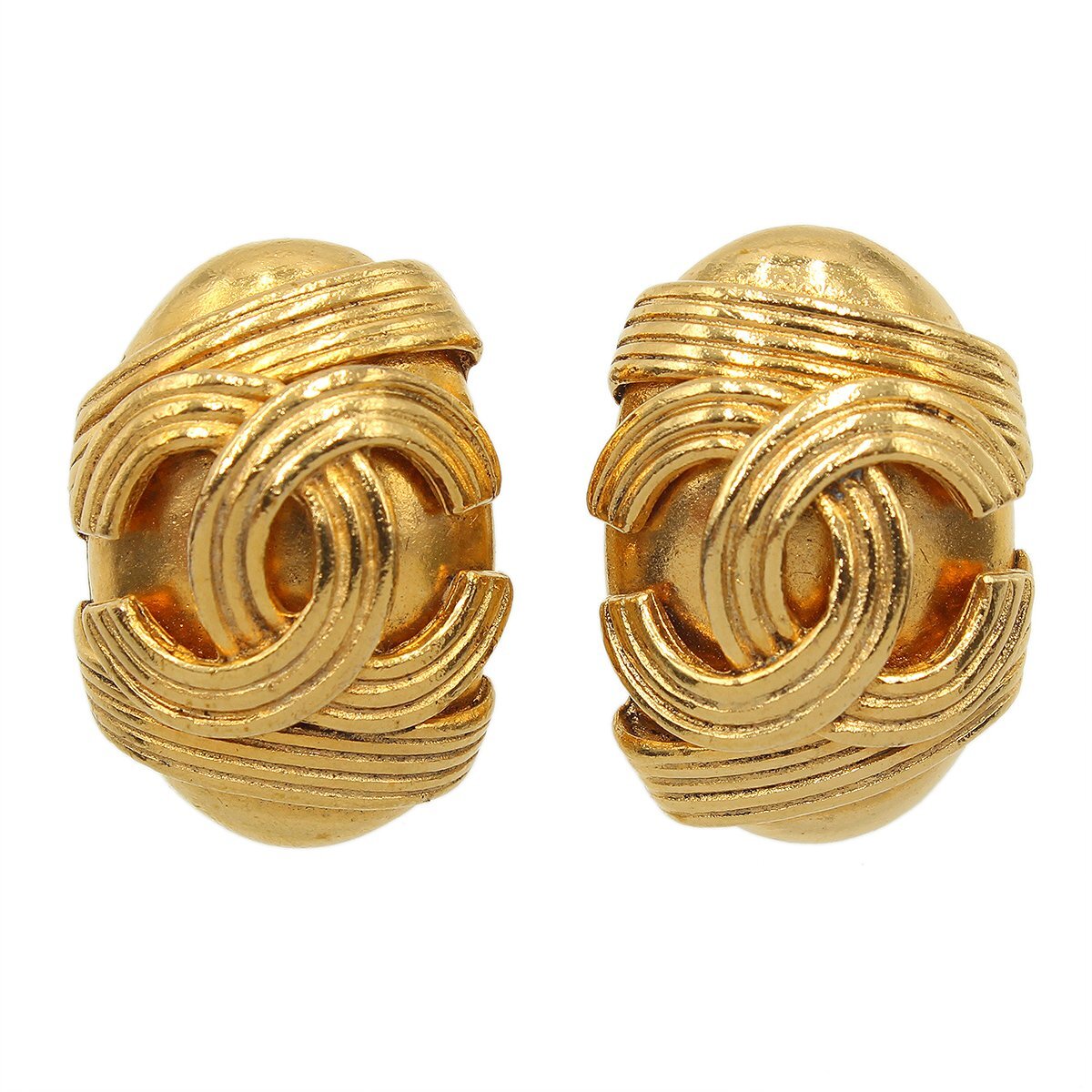 ★Q2940 美品 シャネル ココマーク オーバル型 イヤリング ゴールドカラー 94A ヴィンテージ CHANEL レディース★