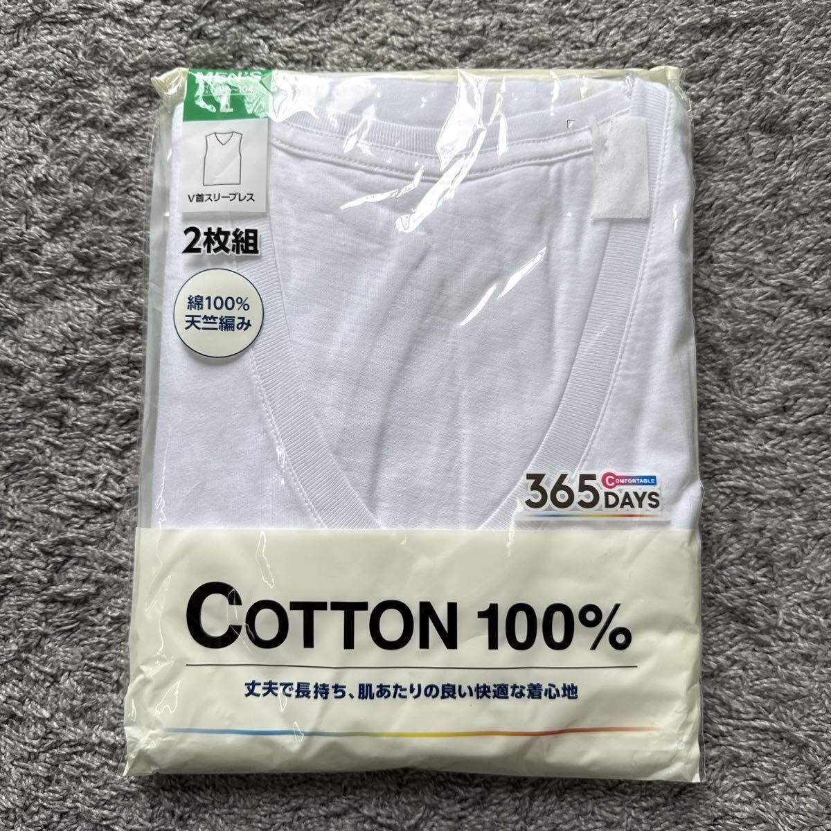- メンズV首スリーブレス100%インナー白2枚組L★ゆうパケット配送可能★新品34