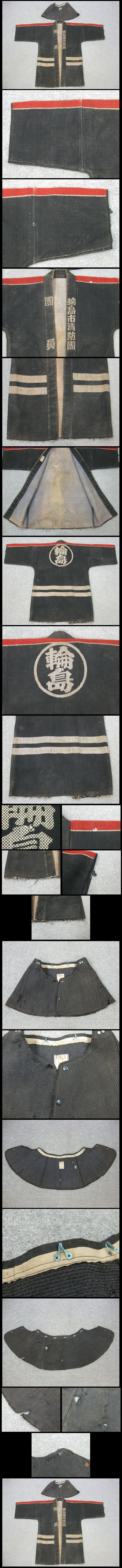 - 【心庵】消防団「輪島市消防団」/刺し子 昭和レトロ アンティーク 古着 古布 B418
