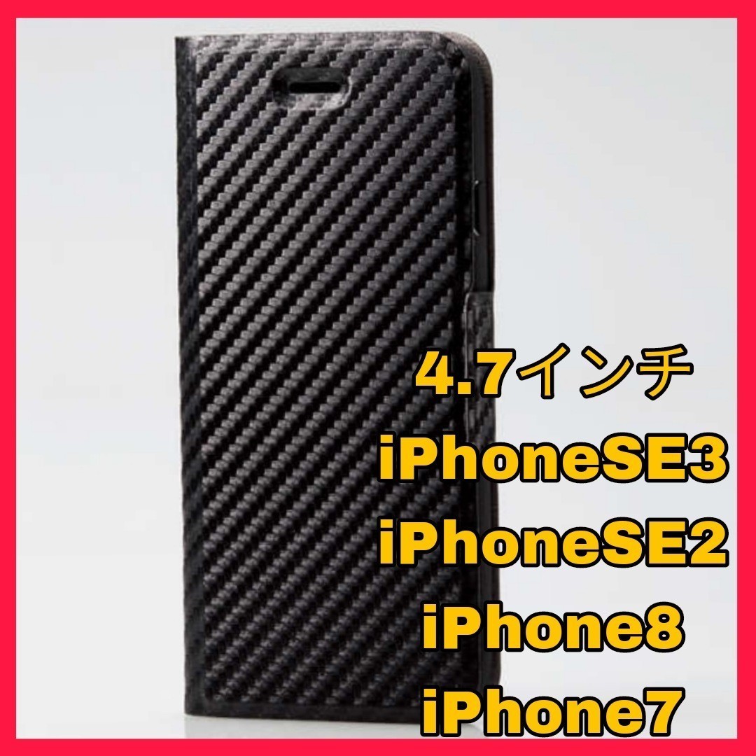 - 新品 送料無料 iPhoneSE3 iPhoneSE2 iPhone8 iPhone7 iPhone SE SE2 SE3 8 7 カバー ケース ブラック 黒 カーボン ワイヤレス充電 手帳型