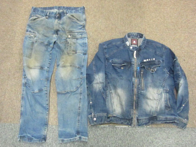 - アイズフロンティア ストレッチデニムワークウエア上下セット メンズ4L W96 デニムワークジャケット&ワークパンツ 作業着 ジーンズ10119