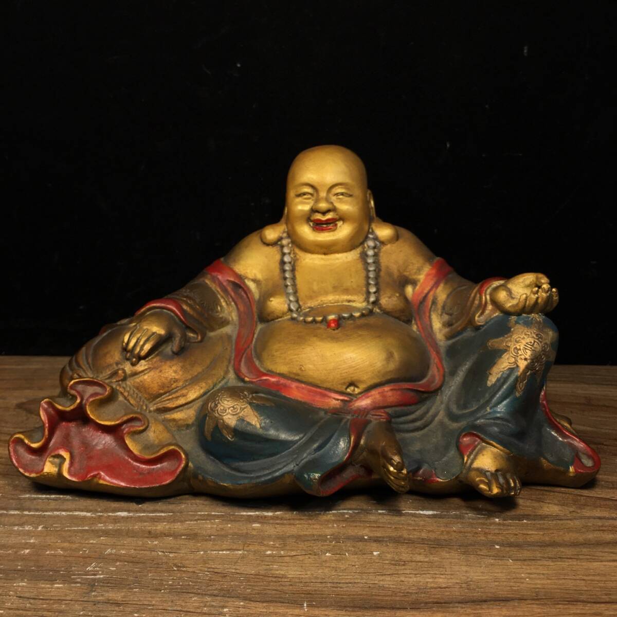 - 【超珍館蔵】銅製細作 彩繪 錢袋彌勒仏像 仏像 宗教 置物 賞物 古賞物 古董品 古美術品 時代物 旧家蔵出 稀少珍蔵品