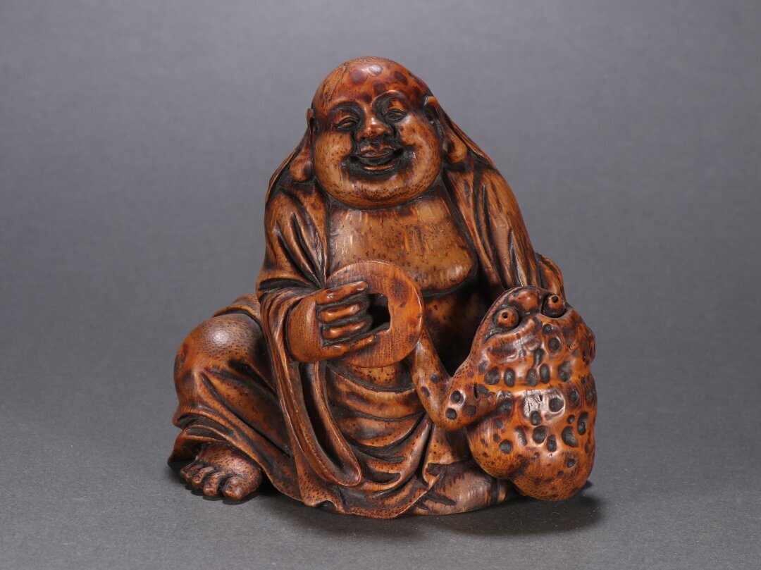 - ▽鴻▽清朝時代 竹彫 劉海戯金蟾置物 時代物 中国古美術 骨董品