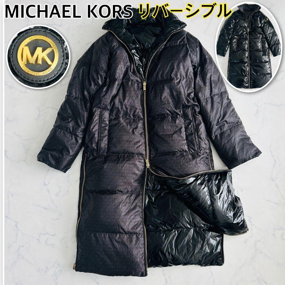 - 【極美品】MICHAEL KORS マイケルコース リバーシブル 2way 総柄×エナメル ロングダウンコート シグネチャー XS