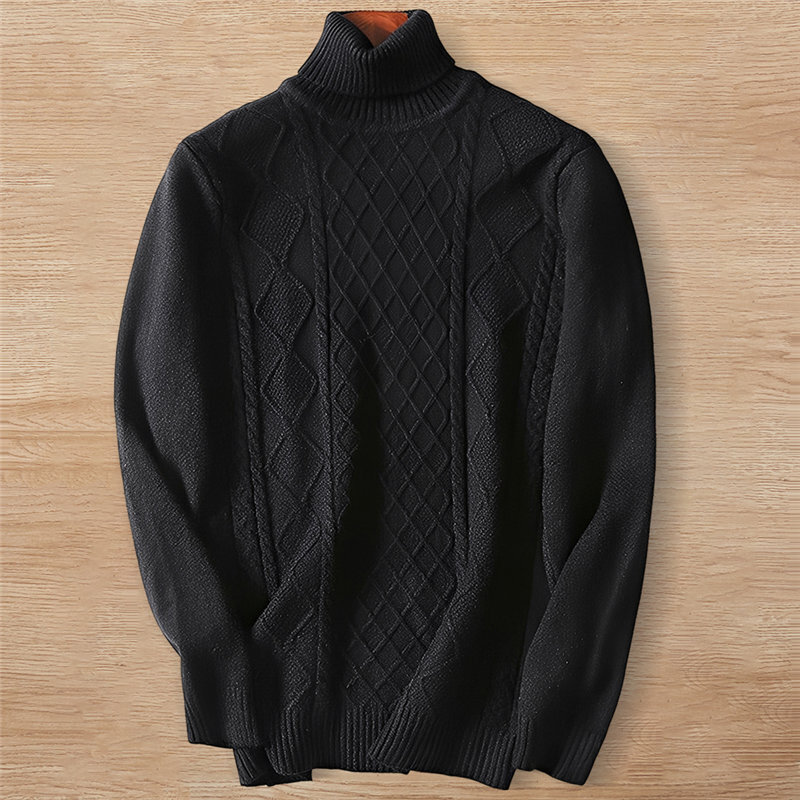 > Y971 ブラック 新品DCKMANY ウール混 ニット タートルセーター ケーブル編み 柔らか 防寒 暖かさ 秋冬 厚手 メンズ カジュアル トップス