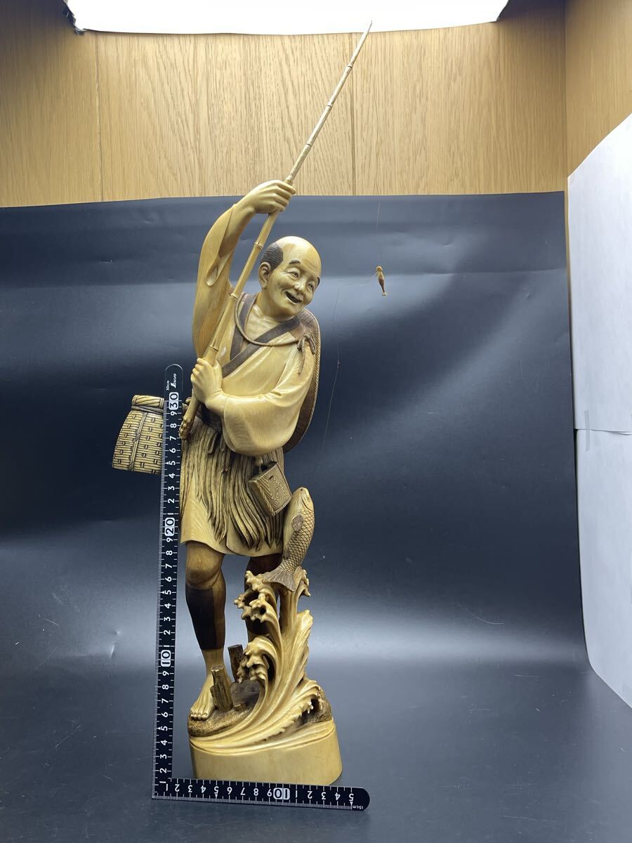 > A12k4 鯨歯風 大型魚人置物 1本彫 3956g 高60cm 在銘 作家物 細密彫刻 天然素材 中国美術 東洋彫刻
