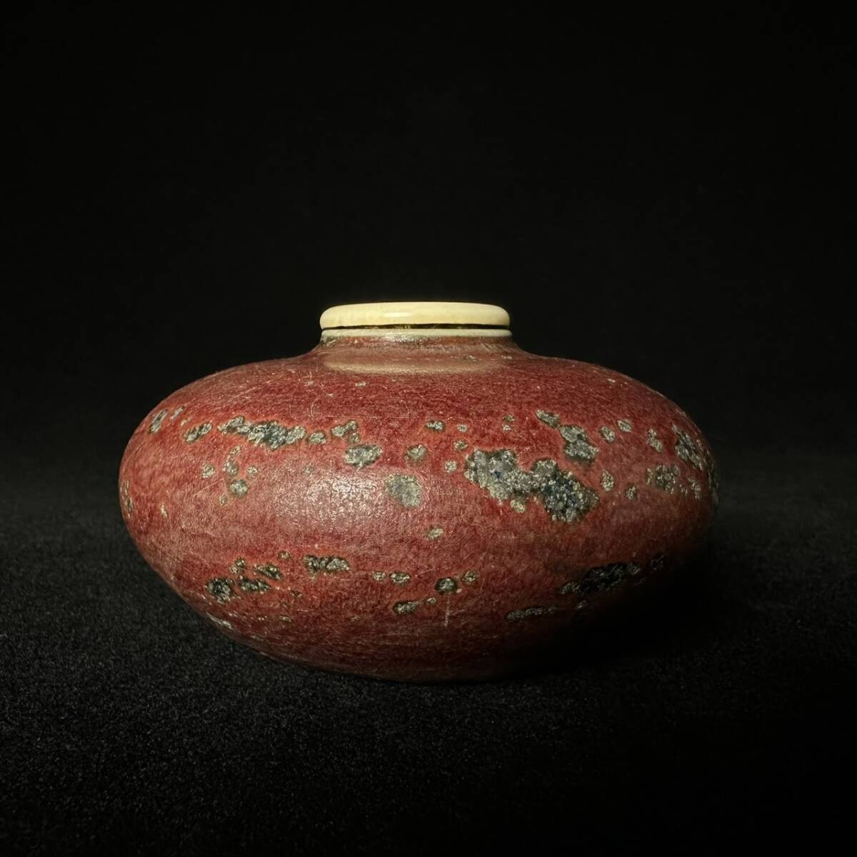 > コレクター買取品 中国美術 紅釉 辰砂 桃紅釉 小壷 唐物 茶入 茶道具 木箱付 蓋物 丸壺 中国古玩 飾物 置物 時代物