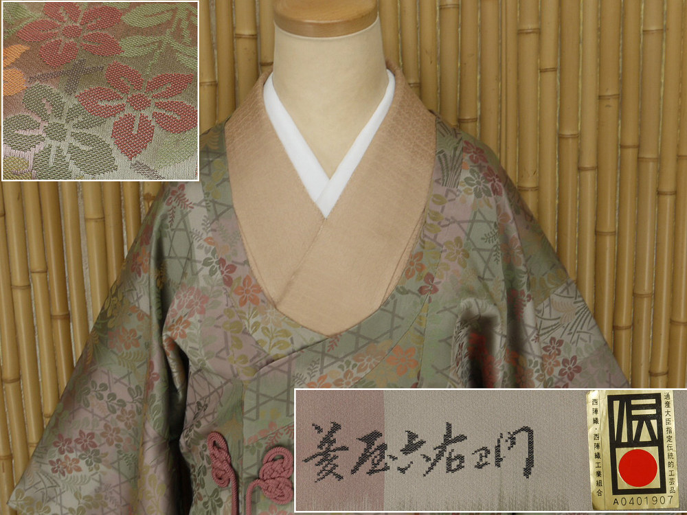 - 【京かんざし】z-4「菱屋六右衛門」朱珍 能装束 能衣装 道行コート 躾糸付未着用★即決送料無料!