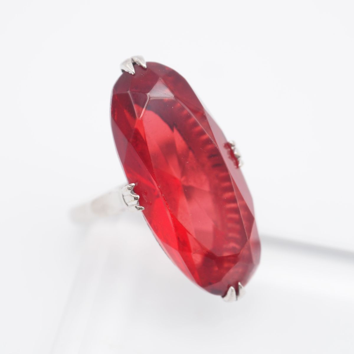 - G525 レッドガラス リング 大ぶり デザイン シルバー 指輪 アンティーク 11号