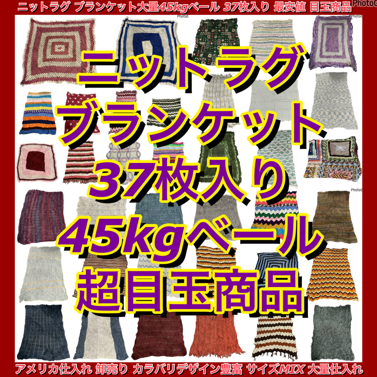 > 【T1572】★37枚入り★ アメリカ仕入れ 古着卸 ニットラグブランケット大量45kgベール 超目玉商品 カラバリデザイン豊富 サイズMIX 最安値