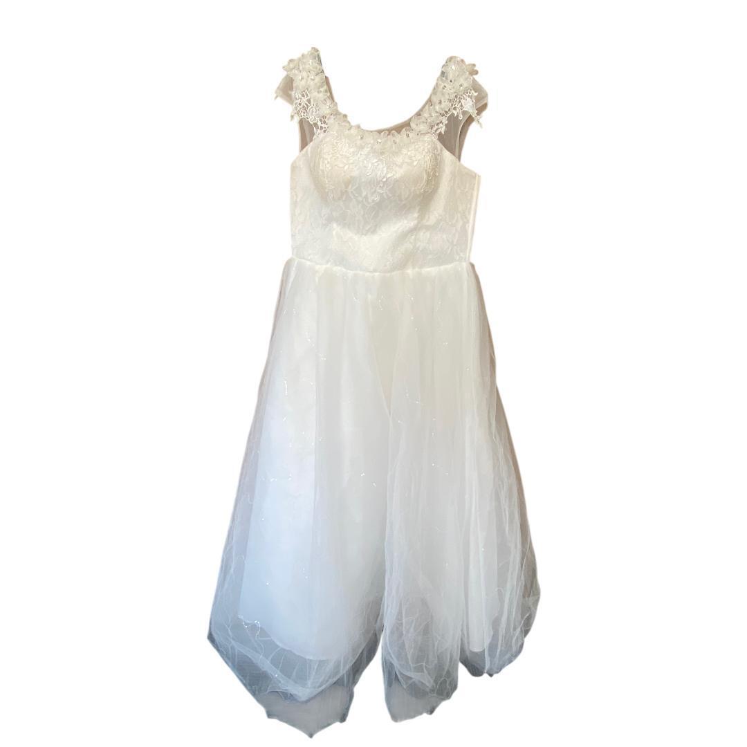 - ホワイト レース ウエディングドレス レースロングヴェール付き cc733