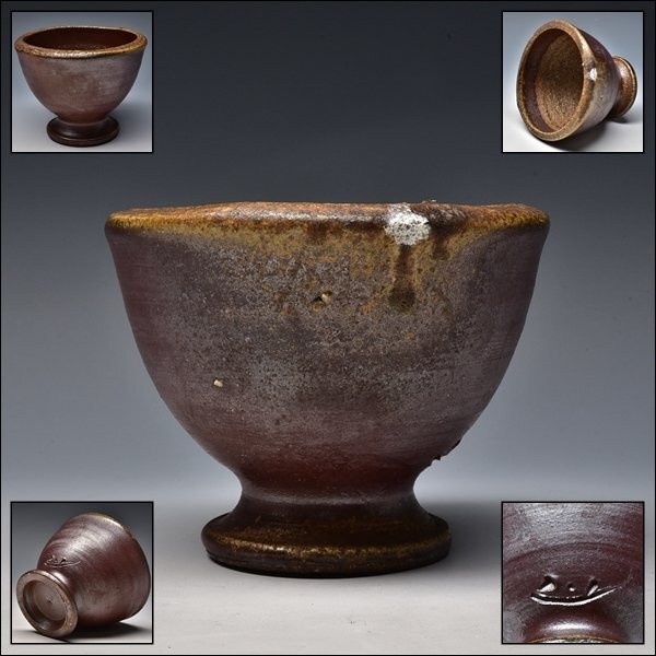- SP5765 吉本正 備前 灰被 窯変 胡麻 器 高台付 師 人間国宝 藤原啓