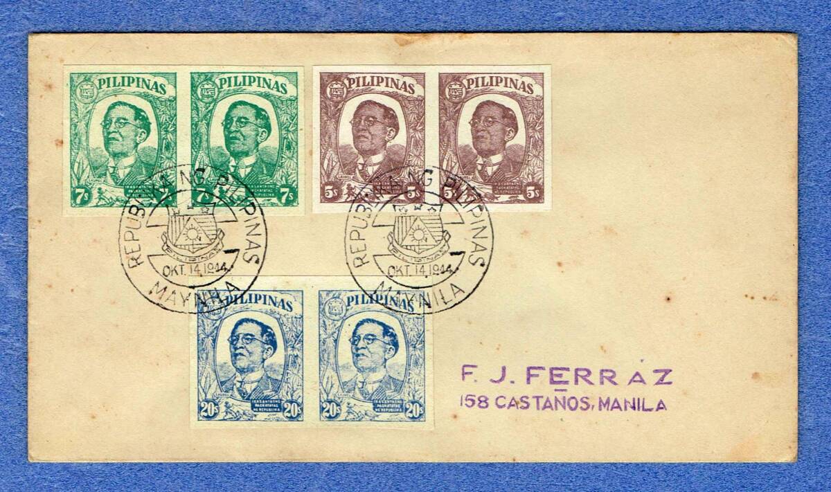 - 南方占領地切手 フィリピン 独立1周年記念 ラウレル大統領 ペア 1944年10月14日 マニラ局 FDC