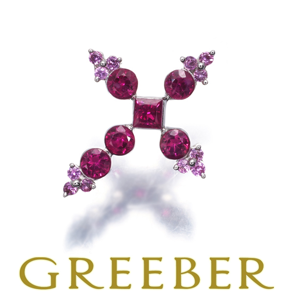 - ルビー 0.62ct ピンクサファイア 0.14ct クロス ペンダントトップ K18WG GENJ