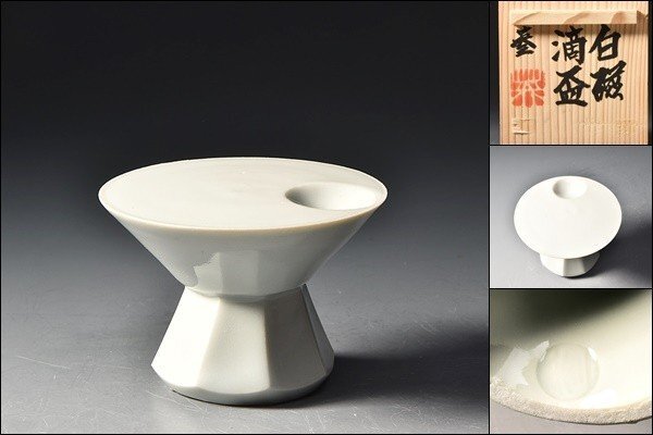 - U08203 椋木英三 李朝風 白磁 滴盃 茶道具 蓋置 にも 共箱