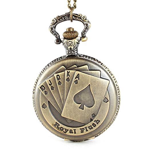 - 【vaps_2】トランプデザイン アンティーク風 懐中時計 チェーン付き おしゃれ メンズ レディース 送込