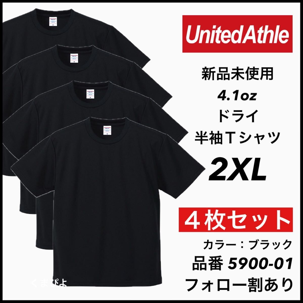 - 新品 ユナイテッドアスレ 4.1oz 半袖 ドライアスレチックTシャツ 無地 吸汗 インナー スポーツ ダンス 黒 ブラック 4枚 2XL ビッグサイズ