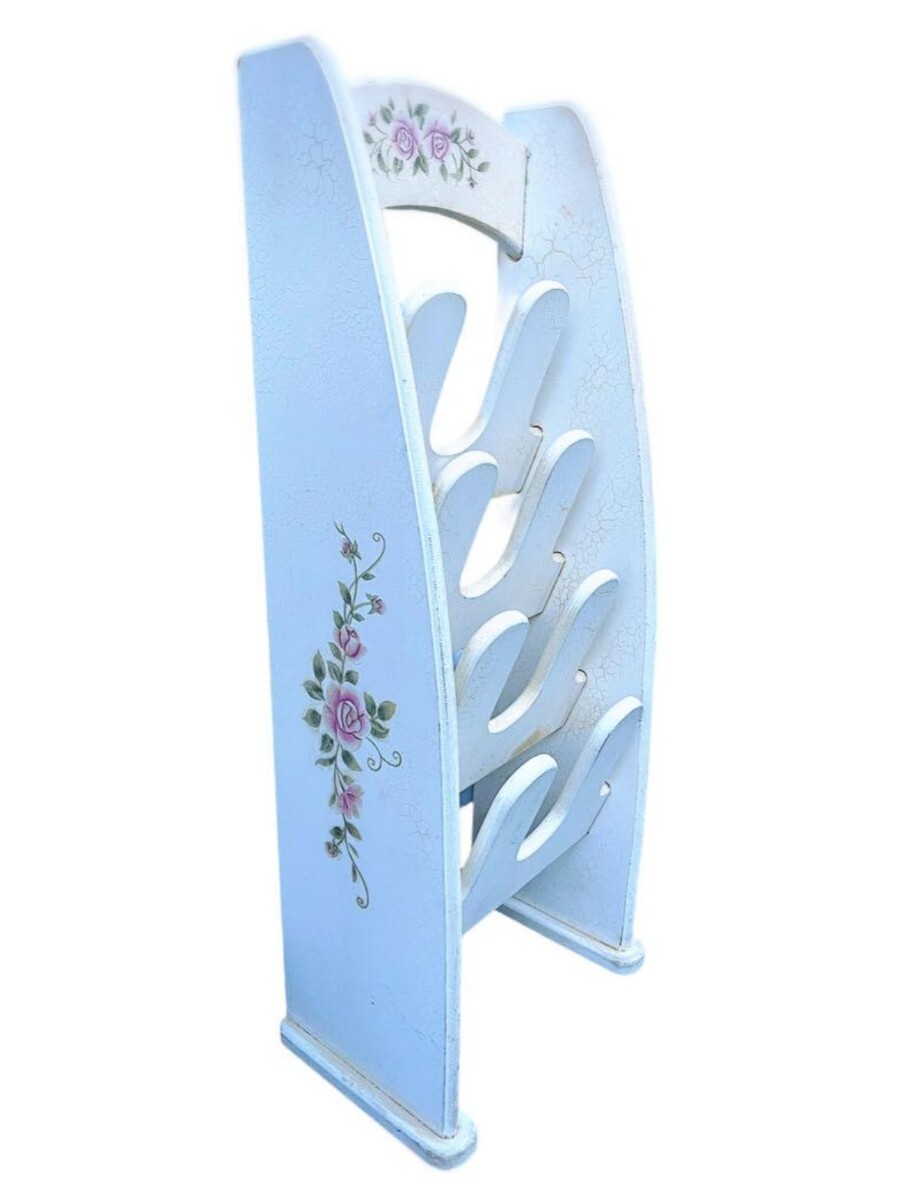 - 花柄 スリッパ ラック スリッパ立て 4足 ローズ ペイント トールペイント 薔薇 バラ 花 インテリア アンティーク フランス 白 ホワイト