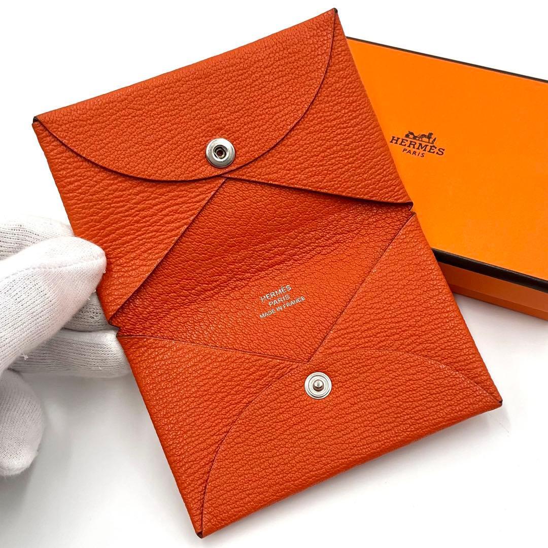 - 美品 HERMES エルメス カルヴィ オレンジ シェーブル カードケース 名刺入れ