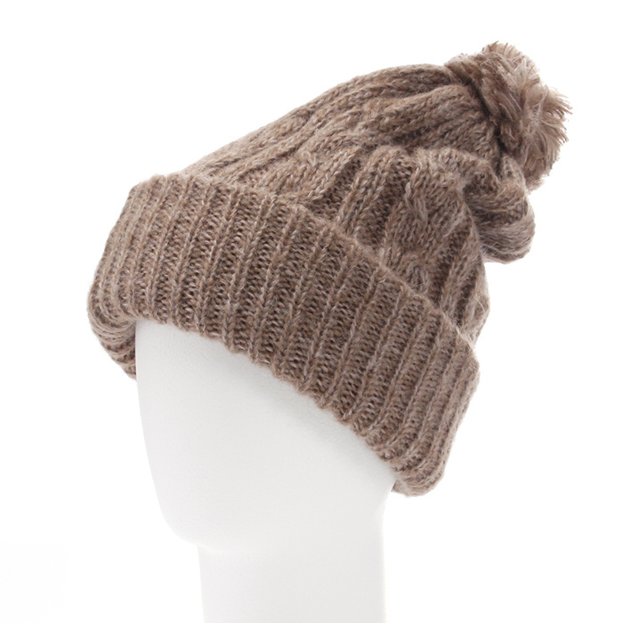 > 【新品】ニット帽 ライトブラウン レディース メンズ キッズ 厚手 ポンポン ニットキャップ ワッチキャップ ビーニー 帽子