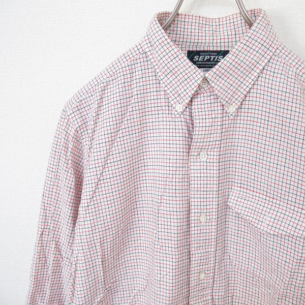 【ブランド】SEPTIS セプティズ【アイテム】長袖シャツ 【表記サイズ】L【平置き実寸】肩幅:約 44cm袖丈:約 60cm身幅:約 57cm着丈:約 72cm【状態】目立った傷や汚れなし【備考】-【色】マルチ【素材】画像をご参照ください。★当店の商品はすべてリユースアイテムとなります。特質上、些細なダメージは記載しておりませんので着用に問題のない使用感、着古した雰囲気などはご了承くださいませ。キーワード/アクイール/古着/used/ビンテージ/ヴィンテージ/昭和/レトロ/BLUE WATER
