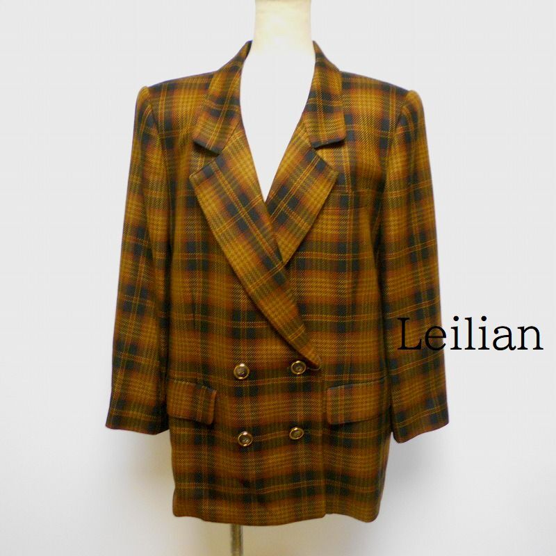 - 973170 Leilian レリアン 茶系 チェック柄 ジャケット 13+