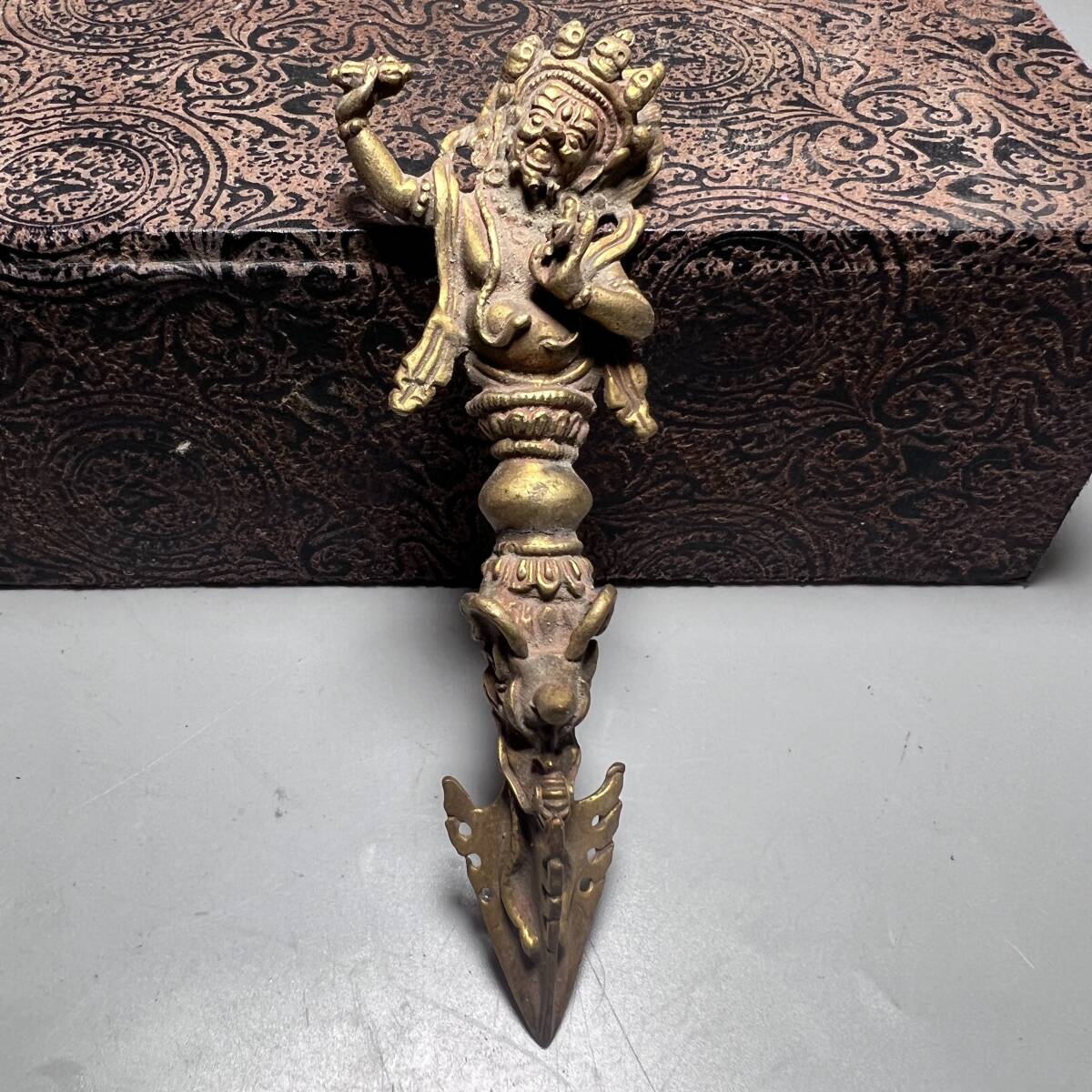 - 旧家蔵出し 銅製細作 塗金 法器 降魔杵 仏具 逸品仏具 極細工 置物擺件 美術品 旧家蔵出 旧家供養品