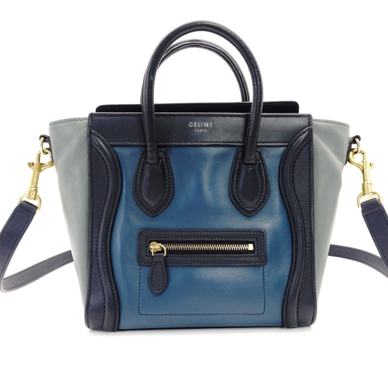 > セリーヌ CELINE ラゲージ マイクロショッパー ハンドバッグ ブルー系 2way 7-4-470