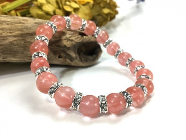 - チェリークォーツ パワーストーン ブレスレット 10mm メンズ・レディース (ゴールド) 開運 浄化 数珠ブレス ☆