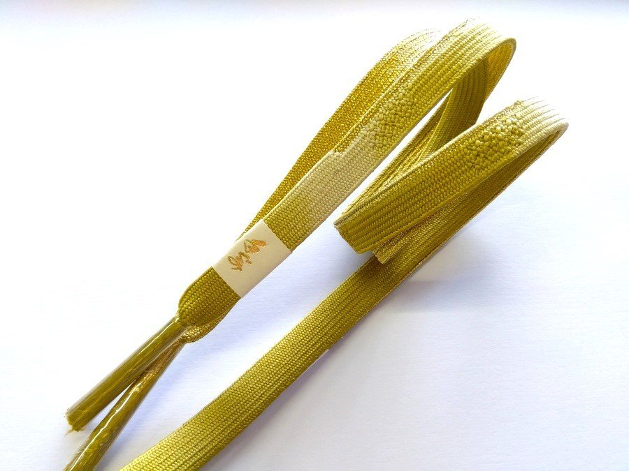 - 正絹帯締め 平組み 手ぐみ 緑黄色 渋黄緑 新品 048 ggp