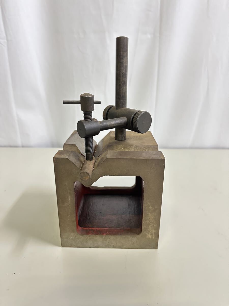 - ▽ マスブロック V溝 Vブロック 桝ブロック クランプ付センター テールストック 金具付 資材 DIY 工具 現状品
