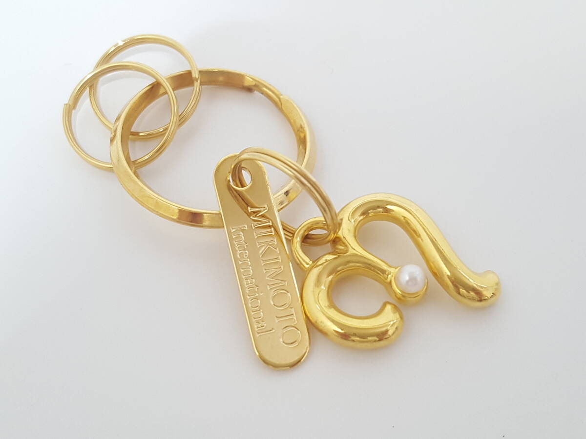 - 【美品】MIKIMOTO ミキモト 本真珠付き キーリング/パール粒約3.8mm/ゴールドカラー/キーホルダー/チャーム/ロゴプレート/06KO101203