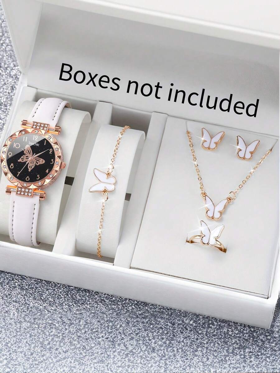 - 腕時計 レディース セット 優雅でファッショナブルなバタフライダイヤル女性用クォーツウォッチ 6点セット バタフライ型ジュエリー