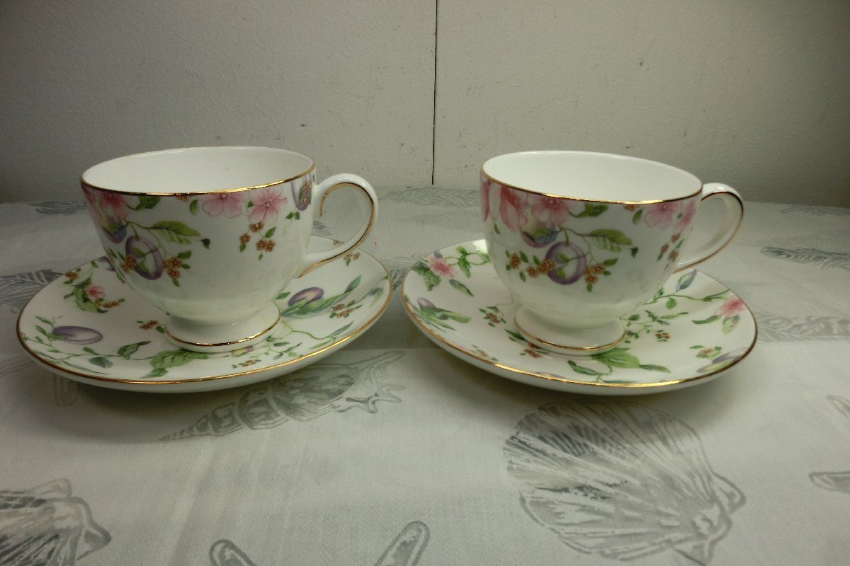 - ♪未使用品★WEDGWOOD/ウエッジウッド★SWEET PLUM ティカップ&ソーサー×2客 FINE ENGLISH BONE CHINA