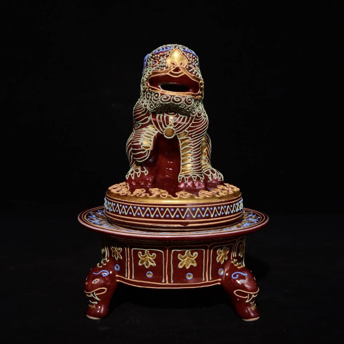 - PTA#0806【3.1】中国骨董 人間国宝 磁器【明永楽制祭紅釉瀝粉蒔絵獅子薫炉】工芸品 施釉陶 青花磁 陶芸 精美彫 置物 收藏品