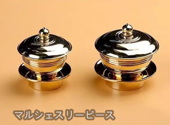 - 密教法具 洒水器、塗香器 二器セット (一面器) 真鍮製 寺院用仏具