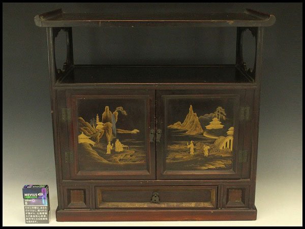 - 【銀閣】茶道具 楼閣山水人物蒔絵 時代 器局 煎茶 棚 旧家蔵出 送料無料(A262)