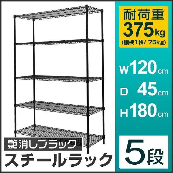 > 新品未使用 スチールラック 5段 耐荷重375kg 120×45×180cm メタル製 シェルフ ラック おしゃれ 収納ラック リビング ガレージ 組立簡単