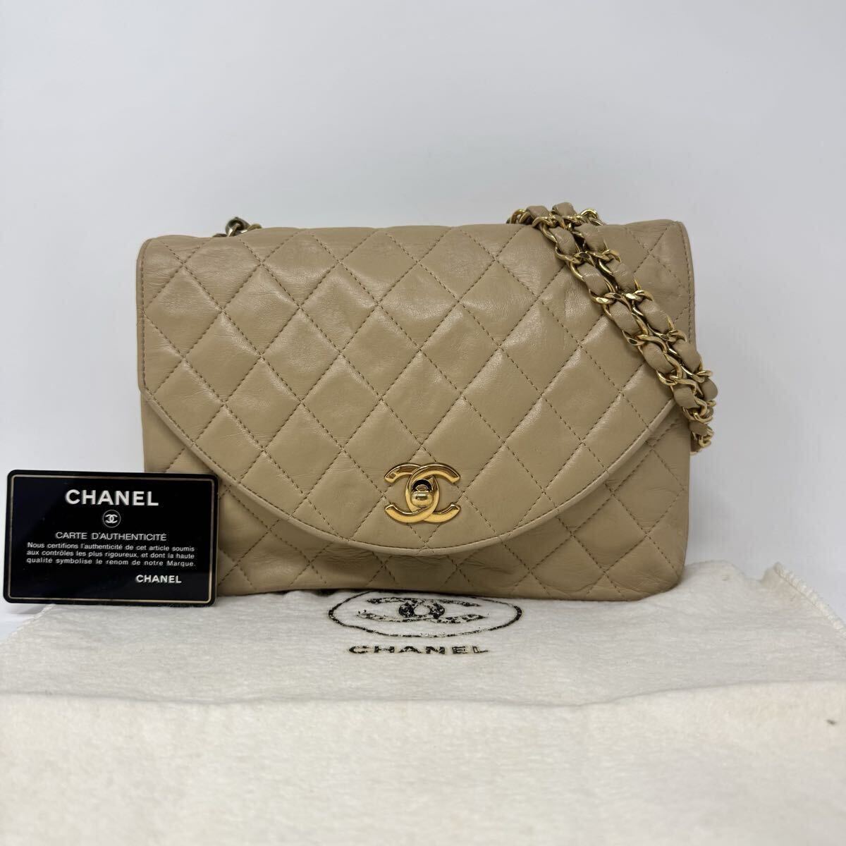 - CHANEL ショルダーバッグ マトラッセ ココマーク ベージュ ゴールド金具 シールカードあり チェーンショルダー シングルフラップ レザー