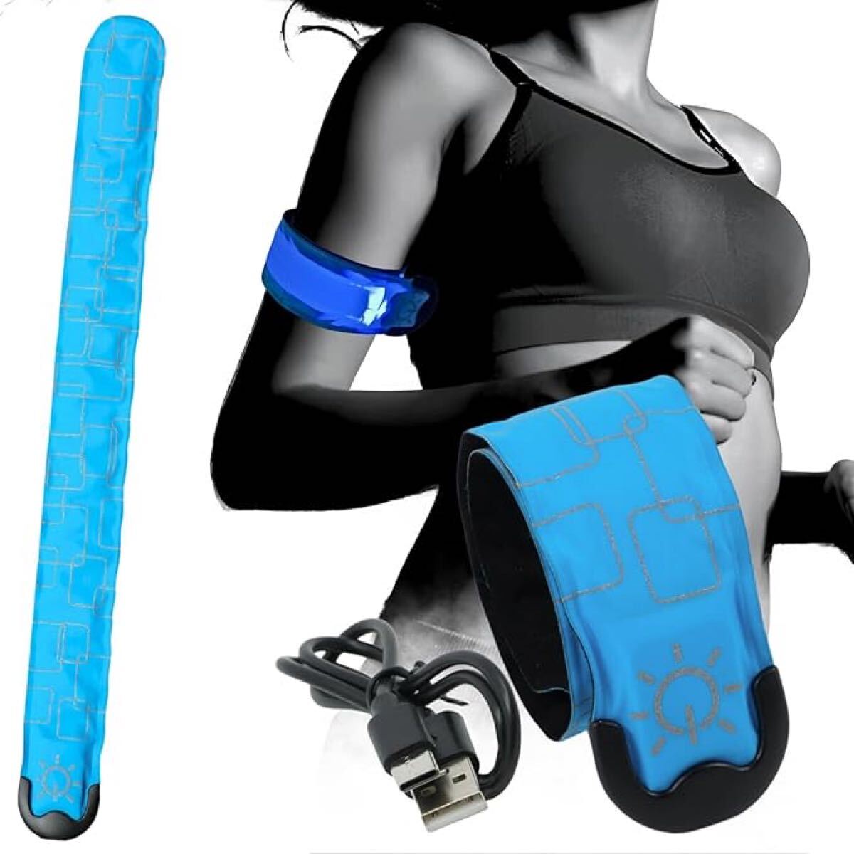 > アームバンド ランニング ライト 充電式 巻き付く 反射バンド 反射バンド 夜間 事故防止  ウォーキング 運動 夜間安全対策 ブルー