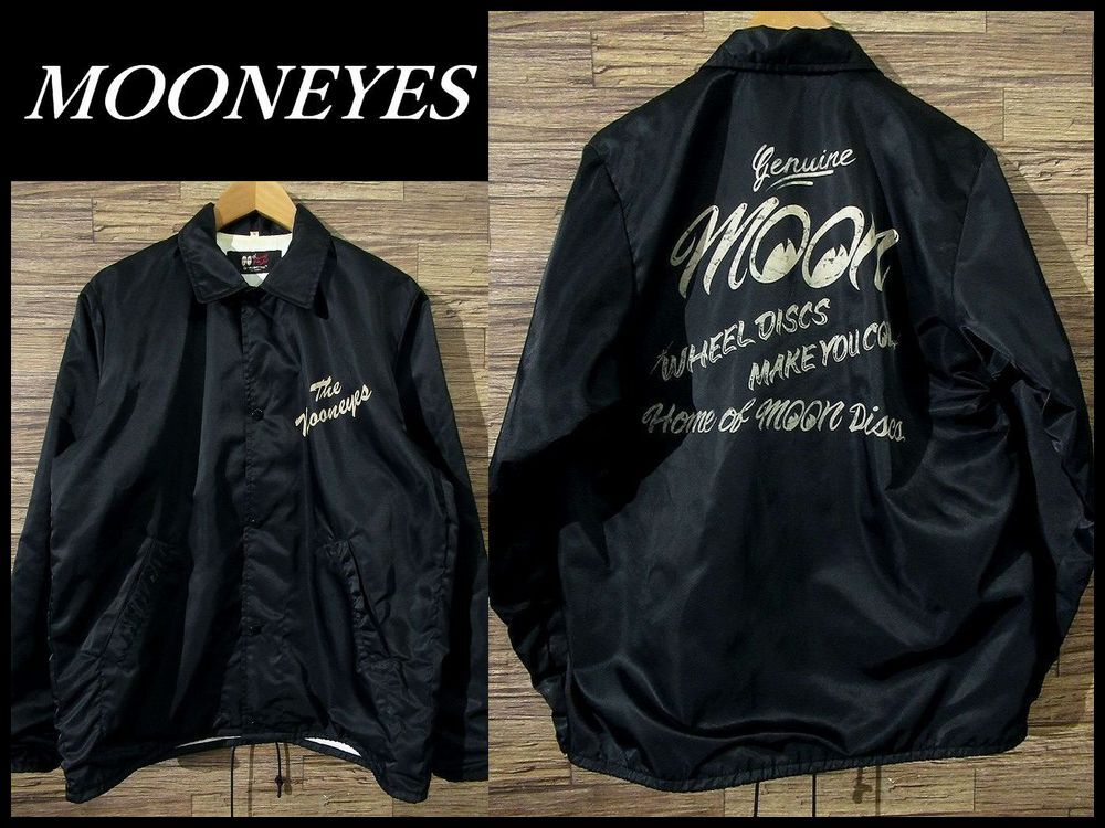 - G① ◆ 雰囲気抜群 90s オールド ビンテージ MOONEYES ムーンアイズ Racing Jac 裏地付き ロゴ プリント ナイロン コーチ ジャケット 黒 M