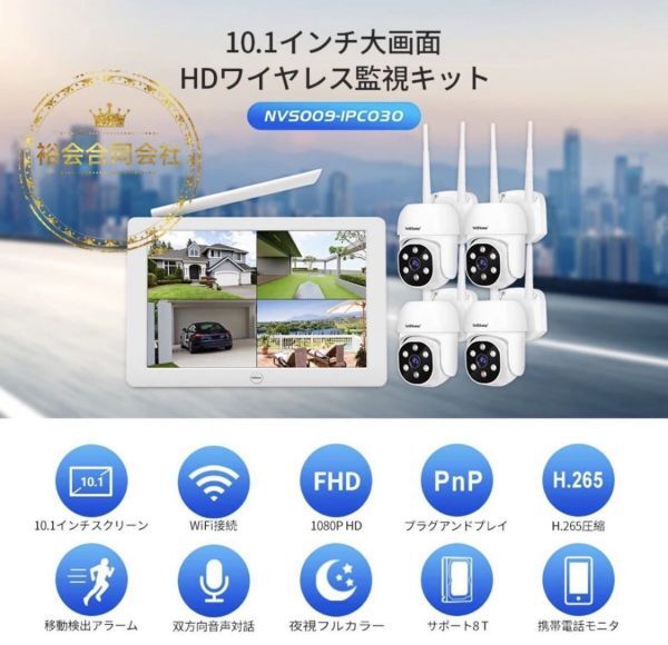 > ★送料無料・30日間保証付き★Srihome2023最新ワイヤレス防犯カメラ4台セット 10.1インチLCDモニター暗視撮影 H.265+映像圧縮技術