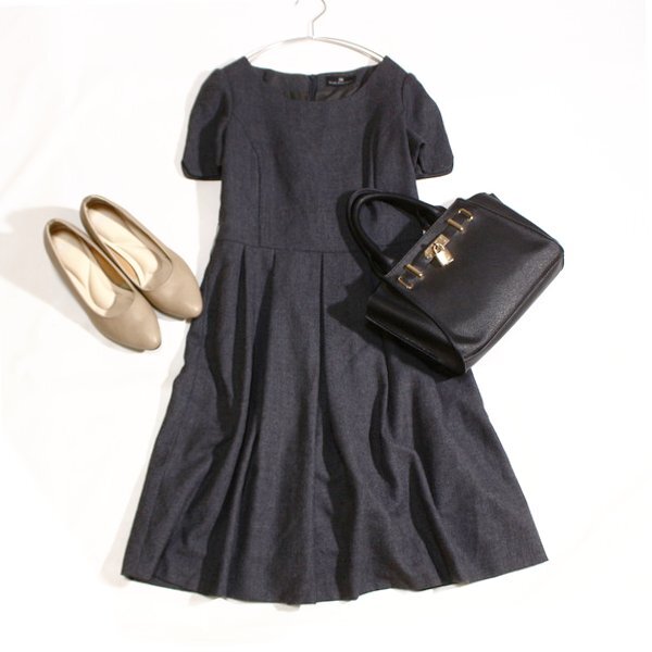 > 美品 KarL Park Lane カールパークレーン 綺麗めレース ウール スーツ生地 ワンピース M 秋 冬 25B10