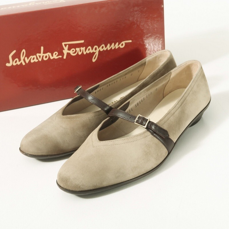 - GS3289■イタリア製 サルヴァトーレフェラガモ オードリー スエードレザー パンプス ストラップ 靴 サイズ8C 24.5cm相当 カーキグリーン系
