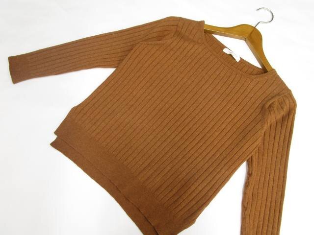 - 美品 ショコラフィネローブ chocol raffine robe 七分袖 ラウンドネック 洗えるニットカットソー F キャメル 【メール便可】