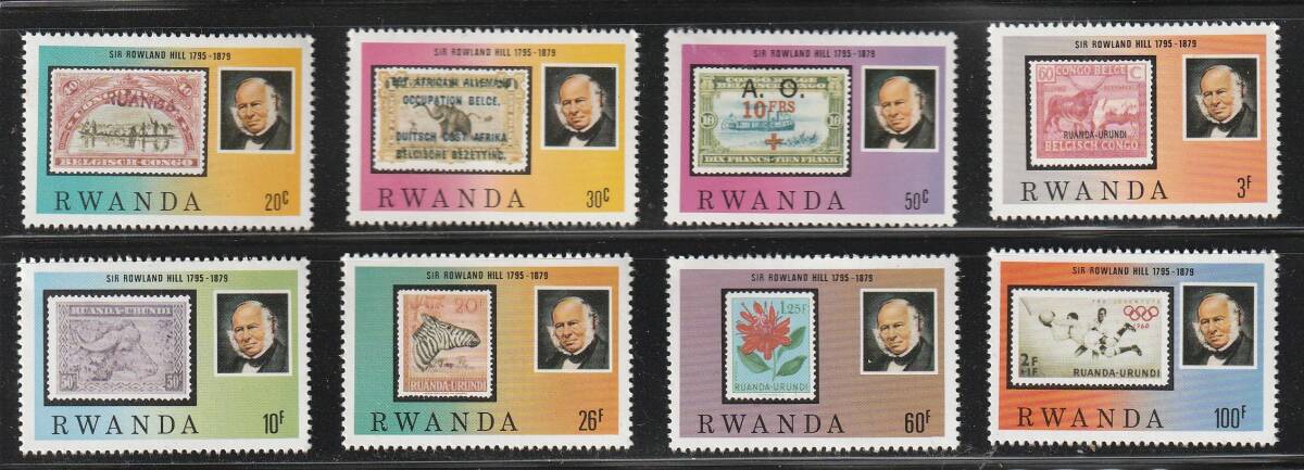 - (ルワンダ)1979年ローランド・ヒル8種完、スコット評価6.65ドル(海外より発送、説明欄参照)