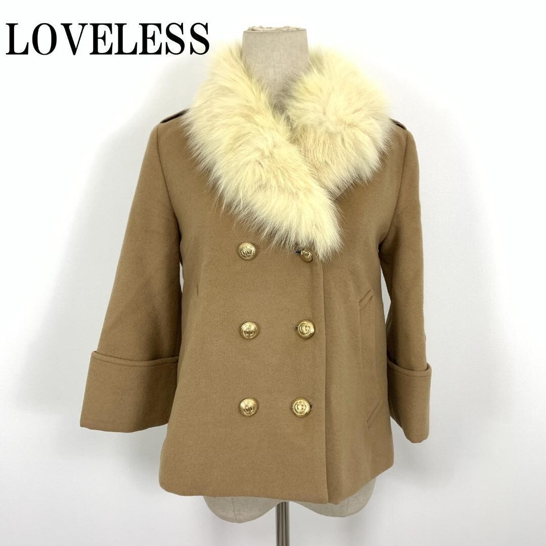 - LA7849 ラブレス LOVELESS ダブルボタン ファー取り外し可能 フレア袖 カシミヤ ファー付き ショートコート ベージュ 36