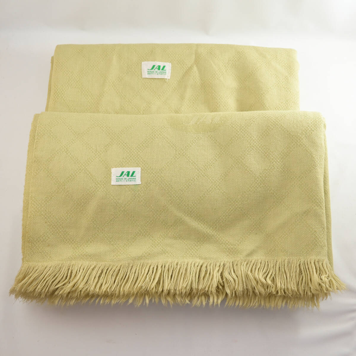 - refle【レトロ】 JAL 2枚 膝掛け ブランケット グリーン 日本航空 難あり 保管臭あり 汚れあり 穴あり 色褪せあり [①]